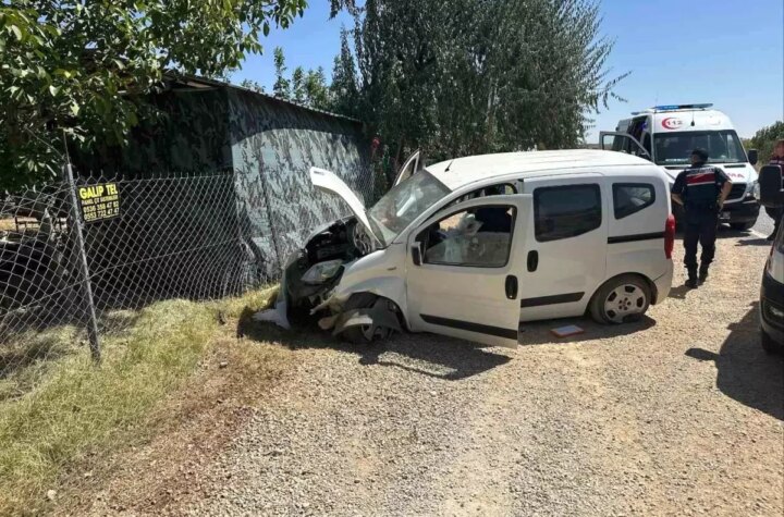 Konya'nın Hüyük ilçesinde seyir halindeki hafif ticari aracın lastiğinin patlaması sonucu meydana gelen kazada...