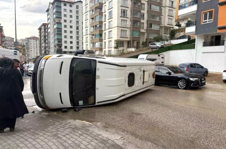 Mamak ilçesinde meydana gelen kazada, kaygan yolda denetimden çıkan minibüs devrildi. Şoför hafif yaralarla...
